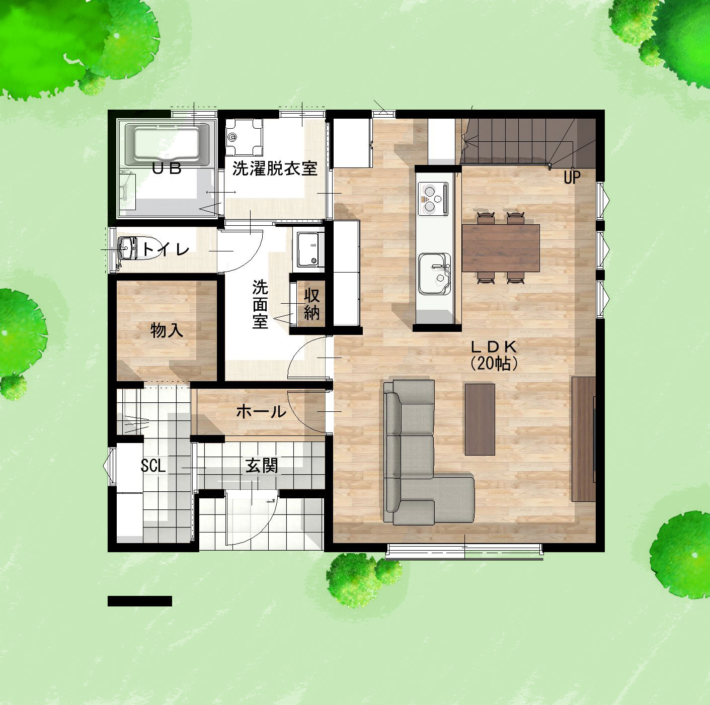 20帖の大きなリビングとその上には吹き抜けのある3LDKのお家です。